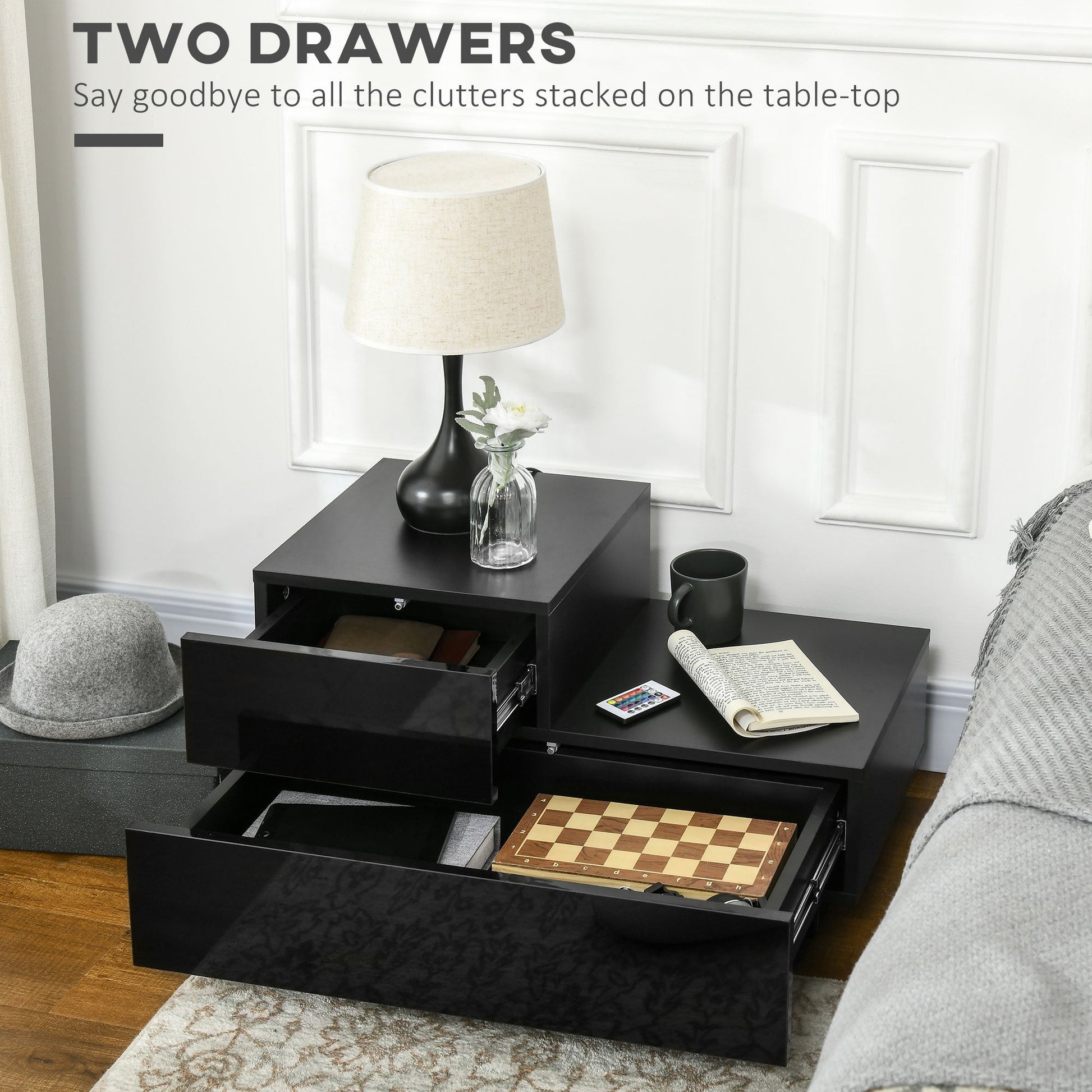 High Gloss Nightstand with RGB LED Light and Two Drawers - Black
